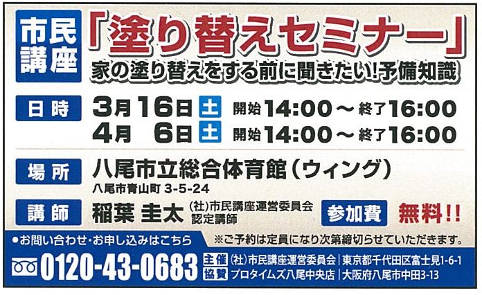 しばらくお休みしておりました「塗替えセミナー」3月・4月に開催します!