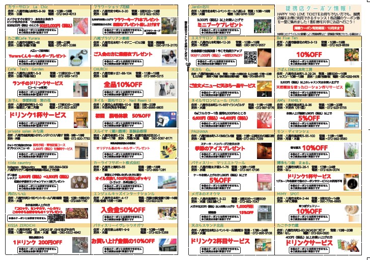 八尾市内の飲食店・美容室・各種教室など、150店舗の提携店の情報を発信しています。
