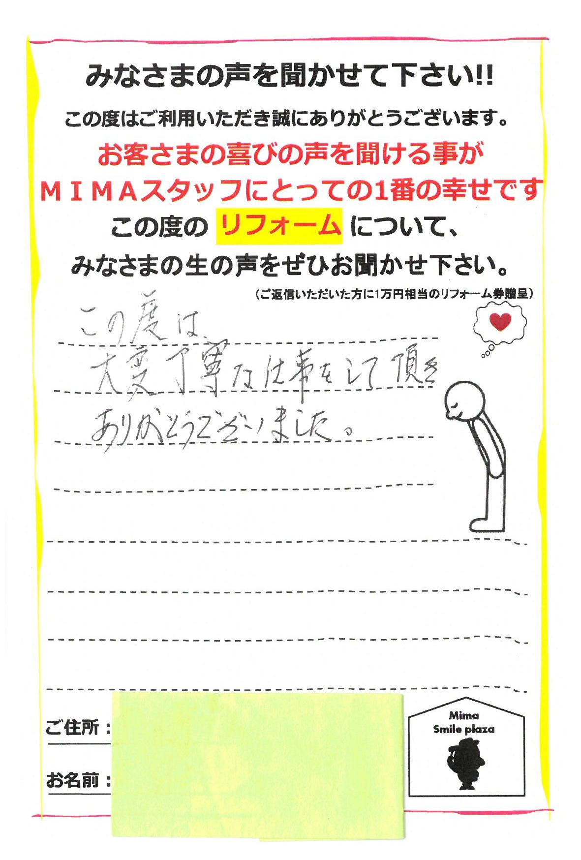 この度は、大変丁寧な仕事をして頂きありがとうございました。