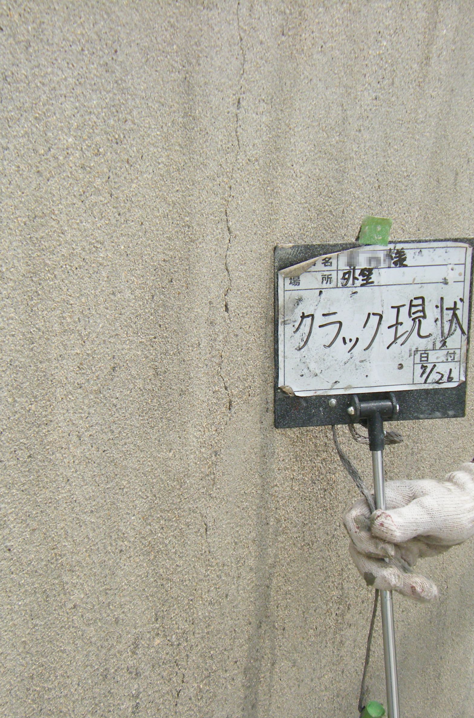 たくさんのクラックがあり、耐震の面や雨漏れの面からも不安材料なので、徹底的にやっつけました。 仕上げには、アステックペイントのEC-2000Fを塗らせて頂きました。 600% のび~る素材なので、クラックにとても強いです。