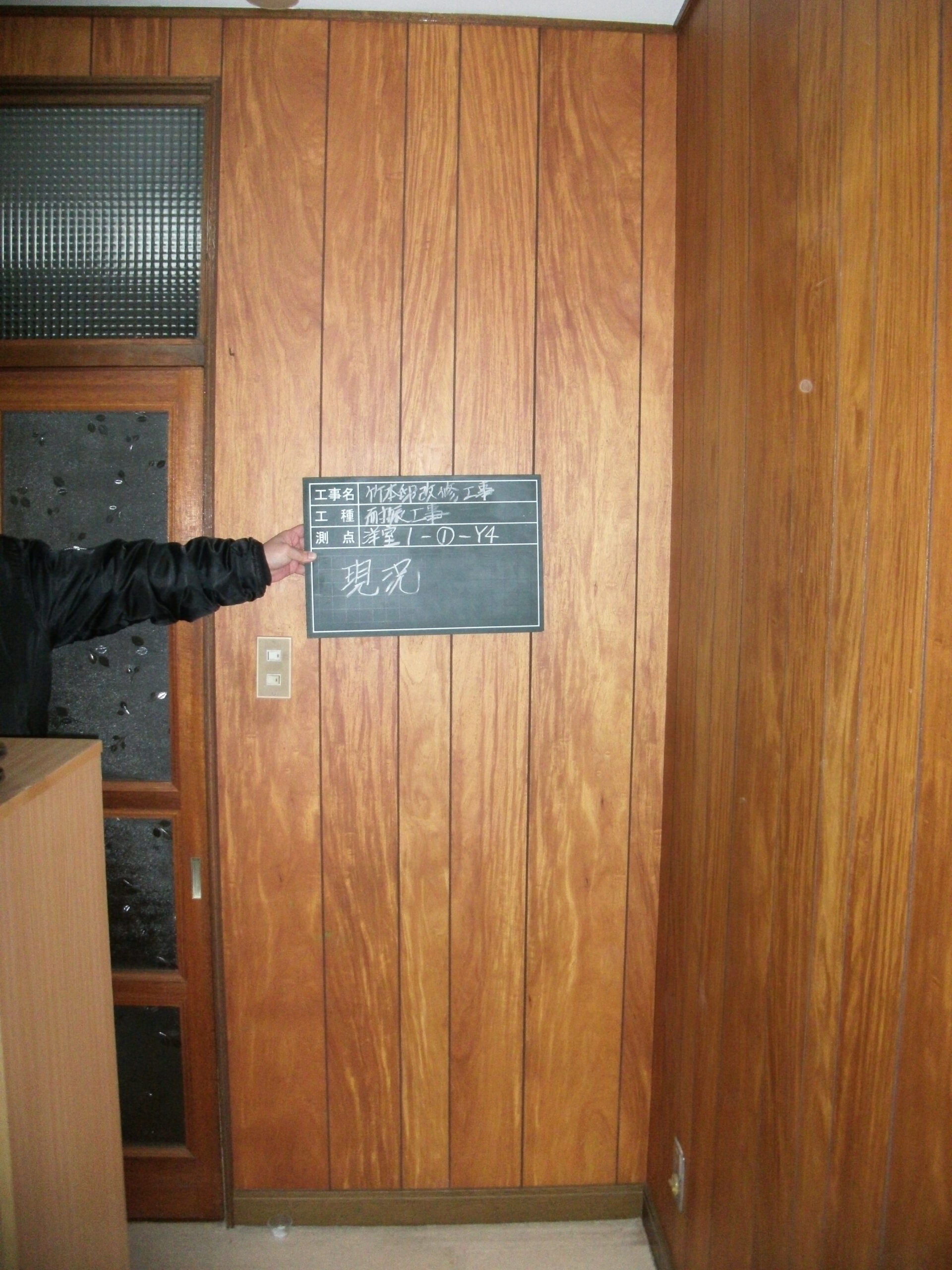 現状間仕切り壁は、化粧合板で仕上げられてます。