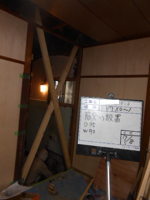 こちらが現況写真です。階段したの押入れを解体し、筋かいを取付ました。