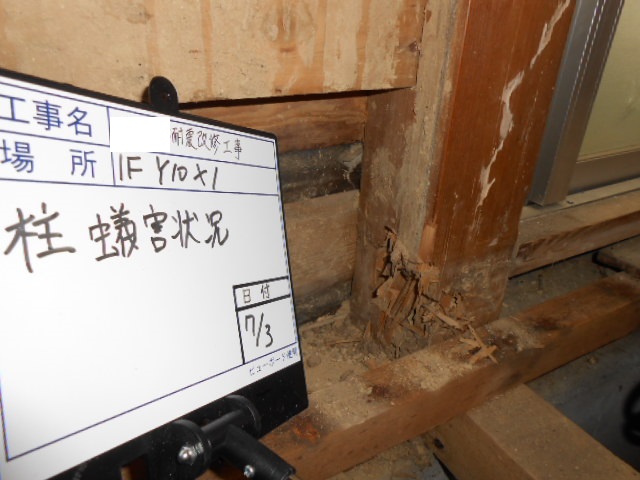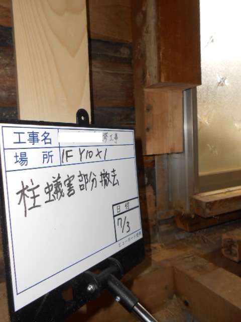 蟻害があった部分を解体し、可能な限り健全な部分は残しました。
