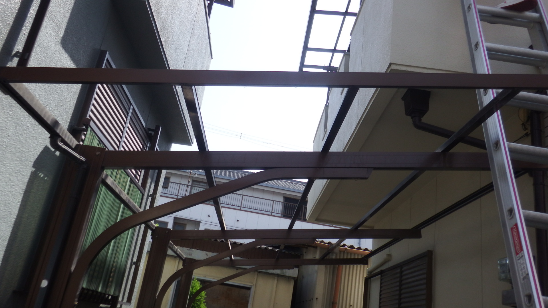 もう波板が飛んでいかないように、フックの止める位置を詰めて施工させていただきました!これで安心です(^o^)/