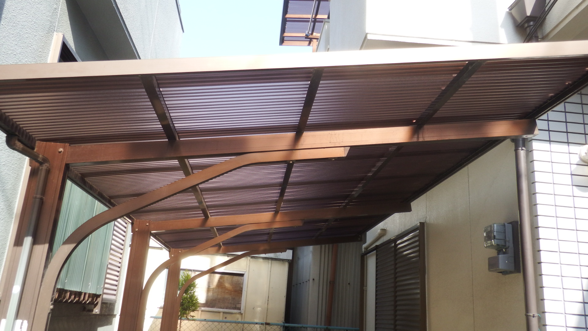 強風で波板が飛んで行ってしまいそう(>_<)ということで、 波板取り替え工事をさせていただきました! 熱線カットタイプをご選択いただきましたので、温度の上昇を抑制します。