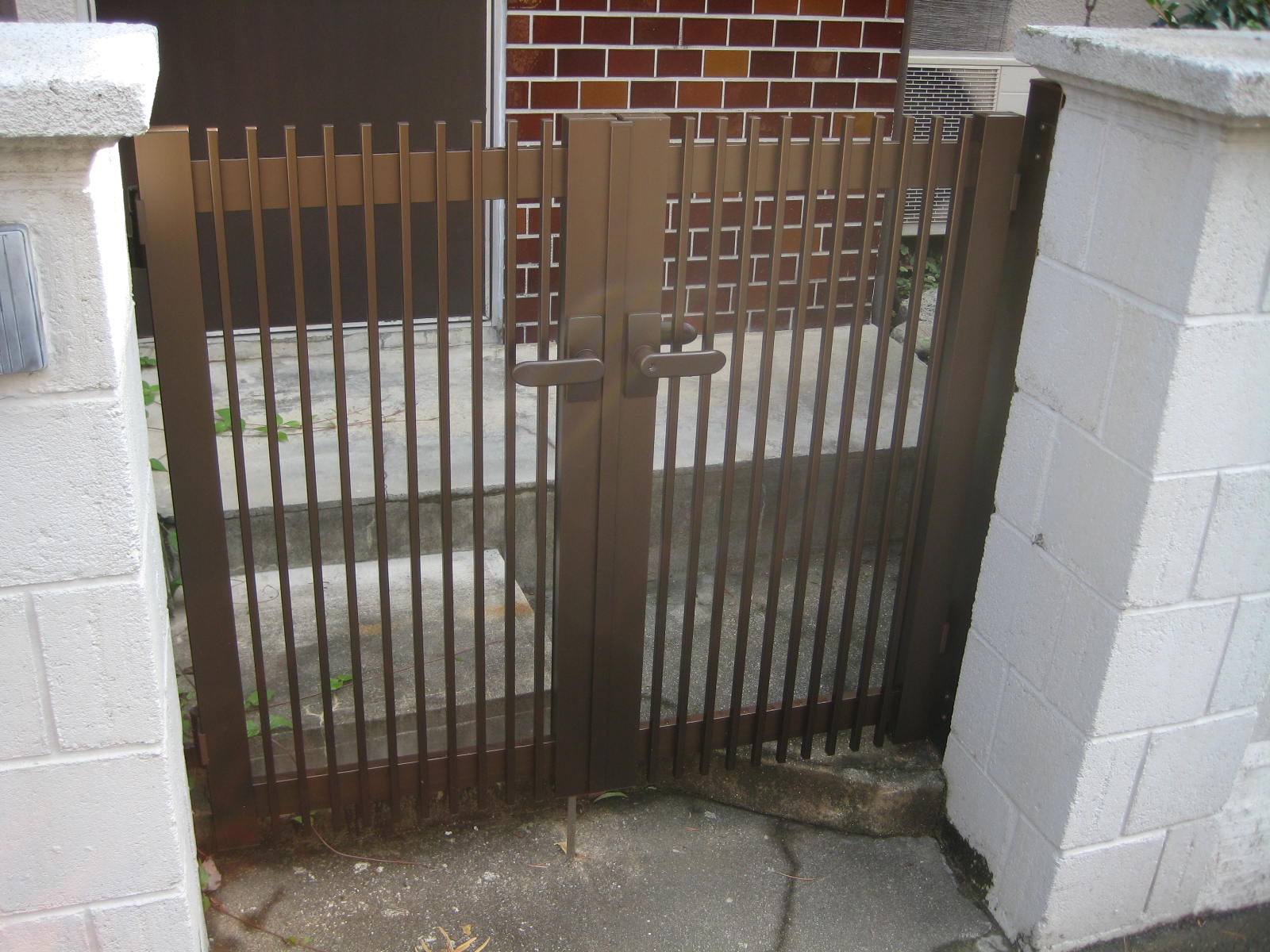 鉄製の門扉・・・塗替えしないと腐食がすすみます。 アルミ製の門扉に取替えさせていただきました。 メンテナンスの必要がありません。