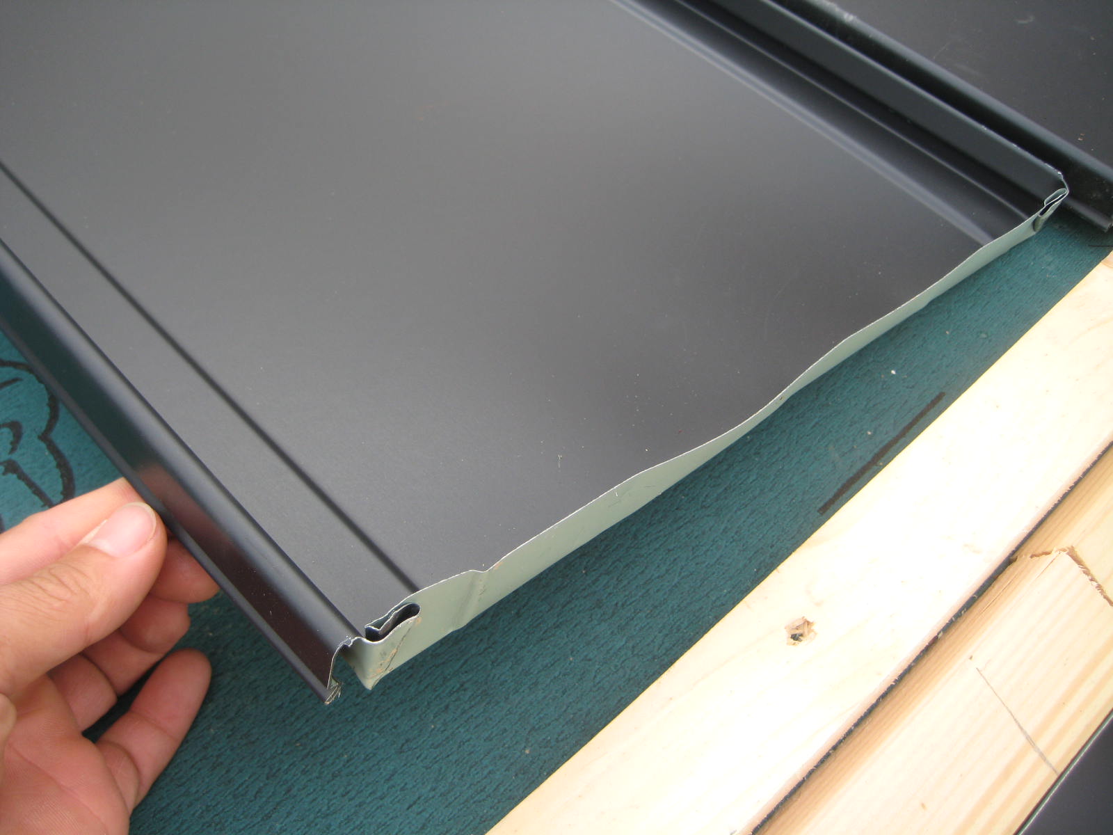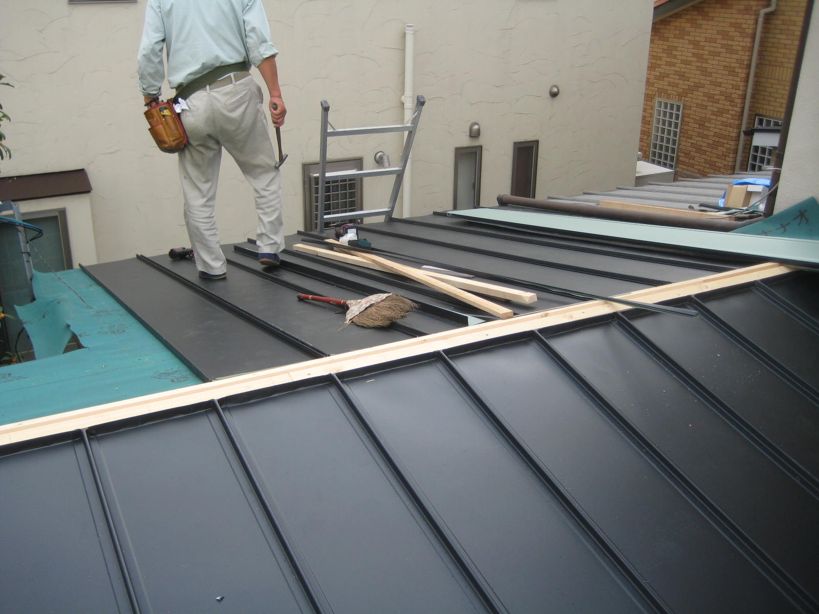 水が入らないように棟近くは折りこみます。
