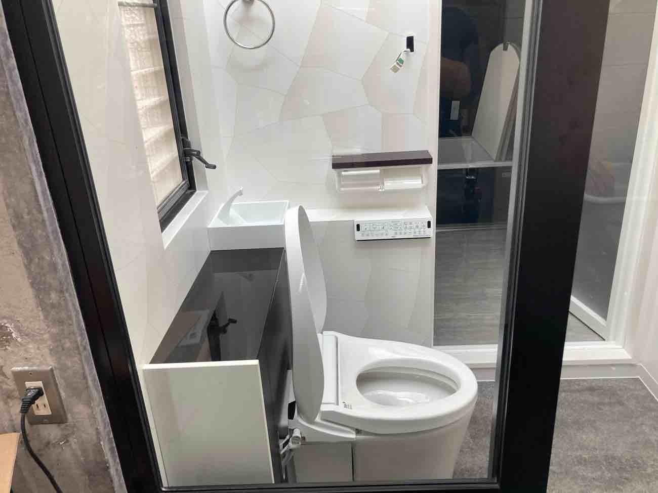 リフォーム前は、カーテンを取り付けておられた、トイレのガラス面ですが、リフォームを機にガラスフィルムを貼って、スッキリ、おしゃれにすることになりました。