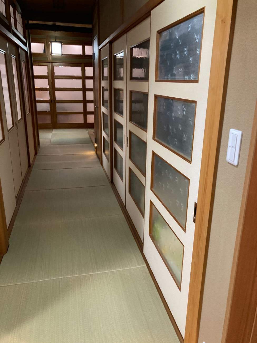廊下沿いの建具を撤去し、壁にサンドジュラクを施工しましたが、こちらは、次回、ご案内します。m(__)m