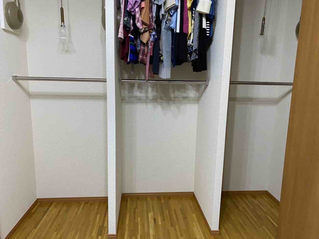 下部には、従来のステンレスのハンガーパイブを取り付け、大容量のクローゼットになりました!