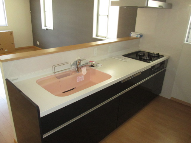 それがこちらです。 ダークな扉カラ―にシンクのピンクがとても合っていて、可愛くなりました(^^
