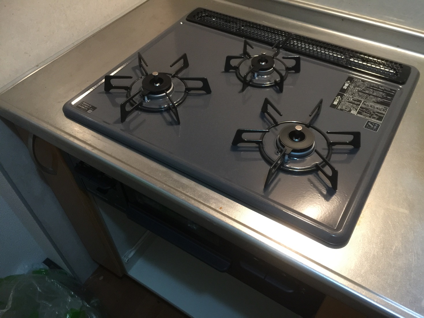新しいコンロはやっぱりきれいですね! 余分な枠がなくなり、掃除も簡単でやりやすくなりました!