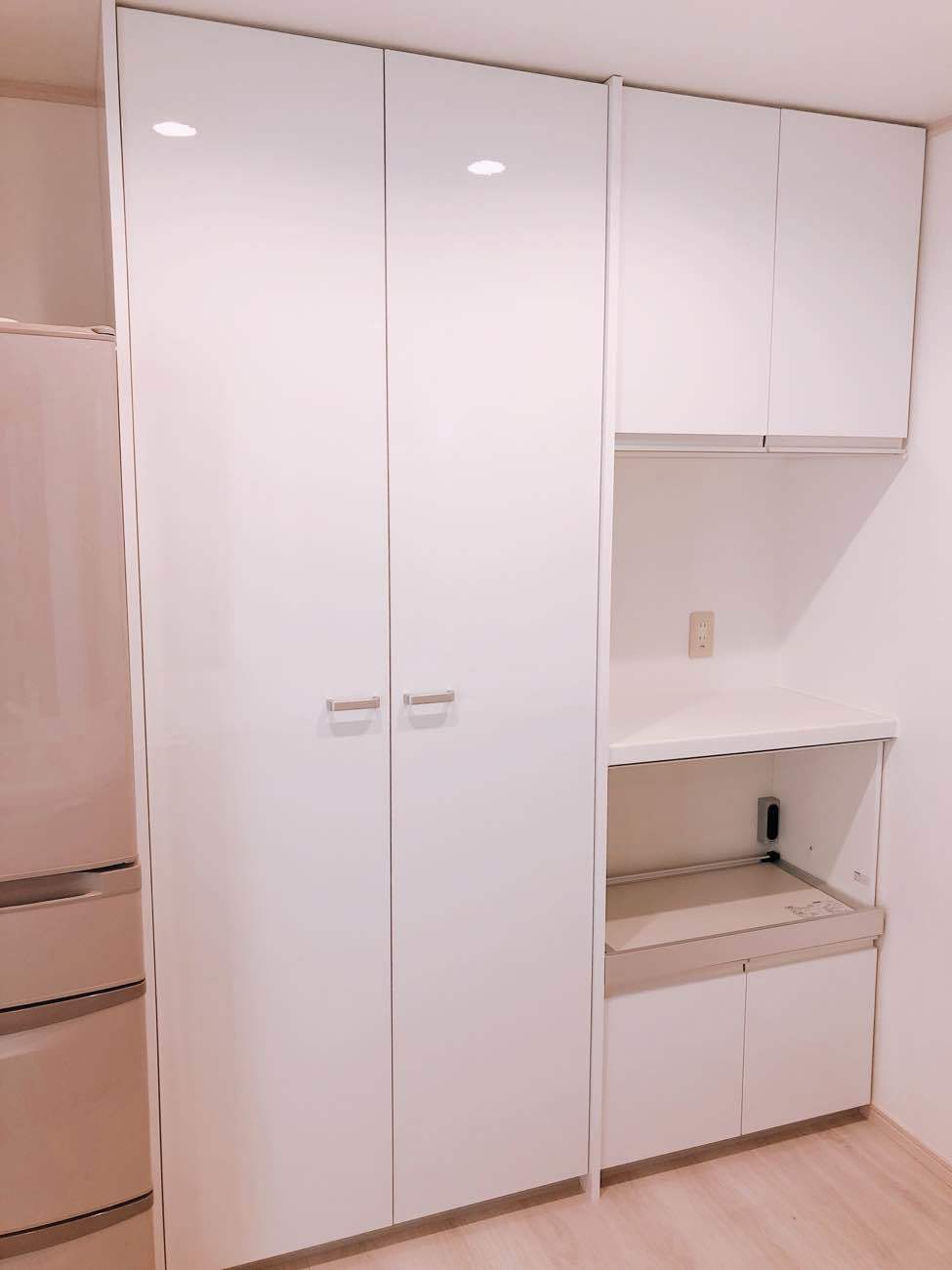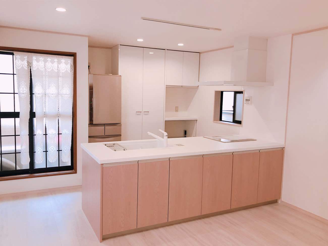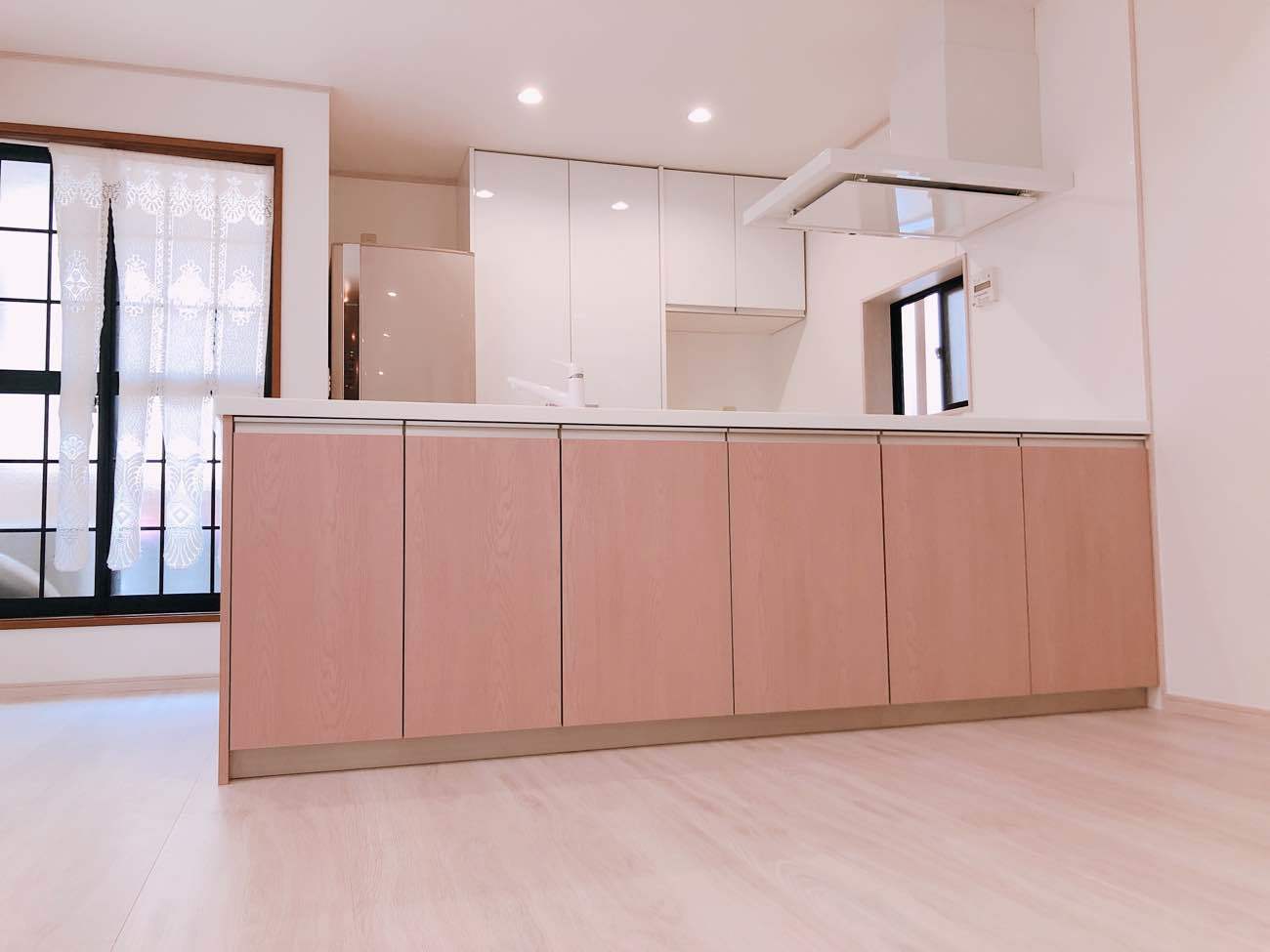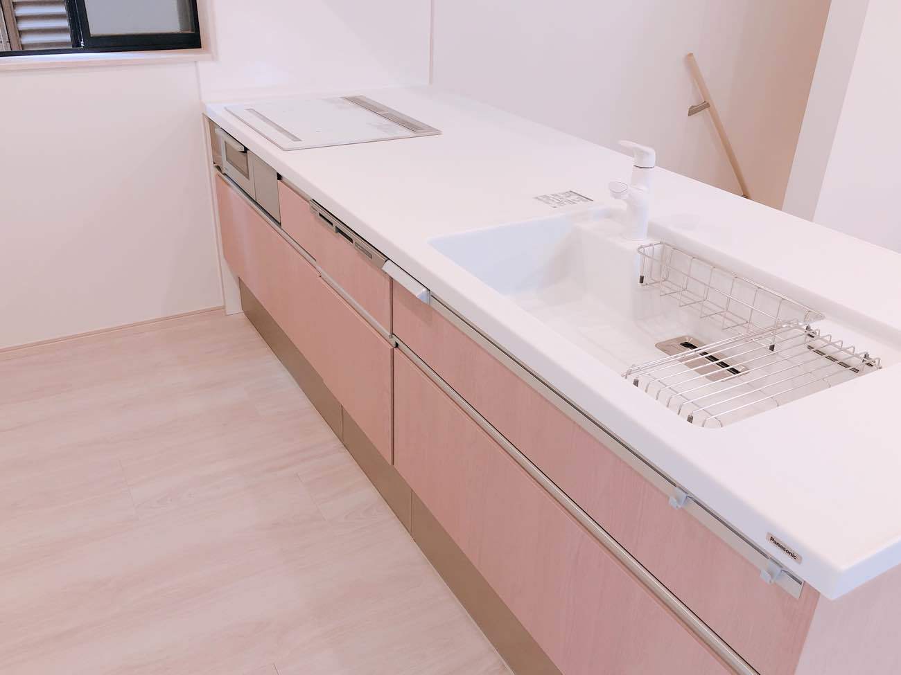 今回は、キッチンのかわいらしいピンクが映えるよう、お部屋の内装を白で合わせています。