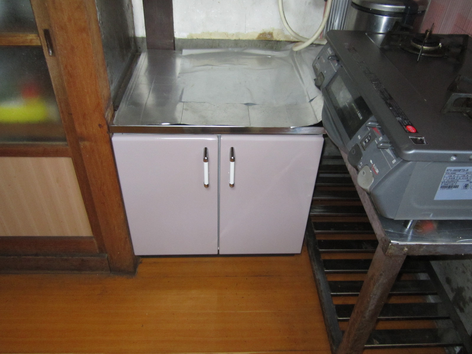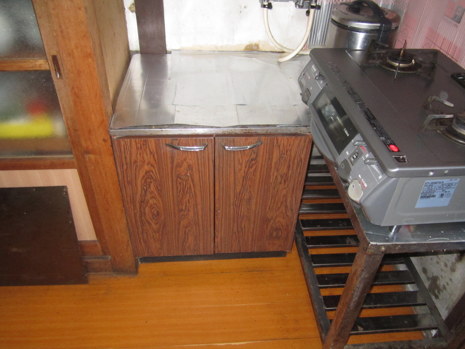 業務用の調理台の上にコンロを置いている為、ガス台をちょっとした調理スペースとして使用されていました。