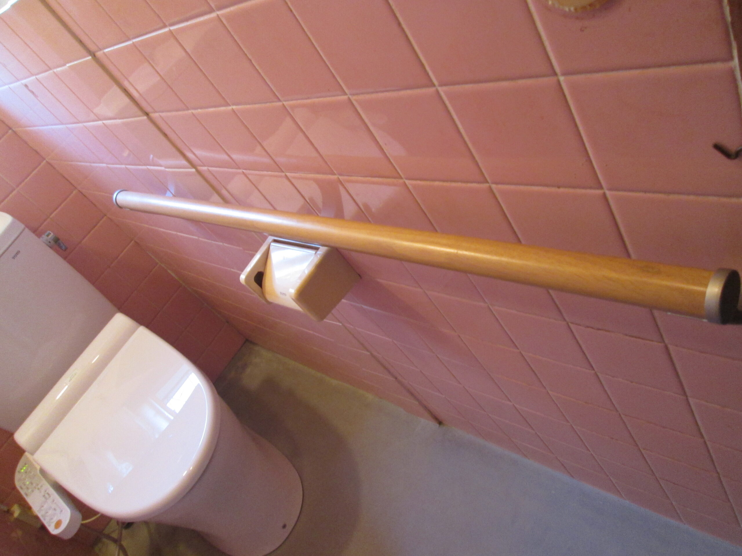 パナソニック製 木製手すりです。 長さや位置は現場ごとに対応できます。今回、つけさせていただいたもので、長さ1m10cmです。