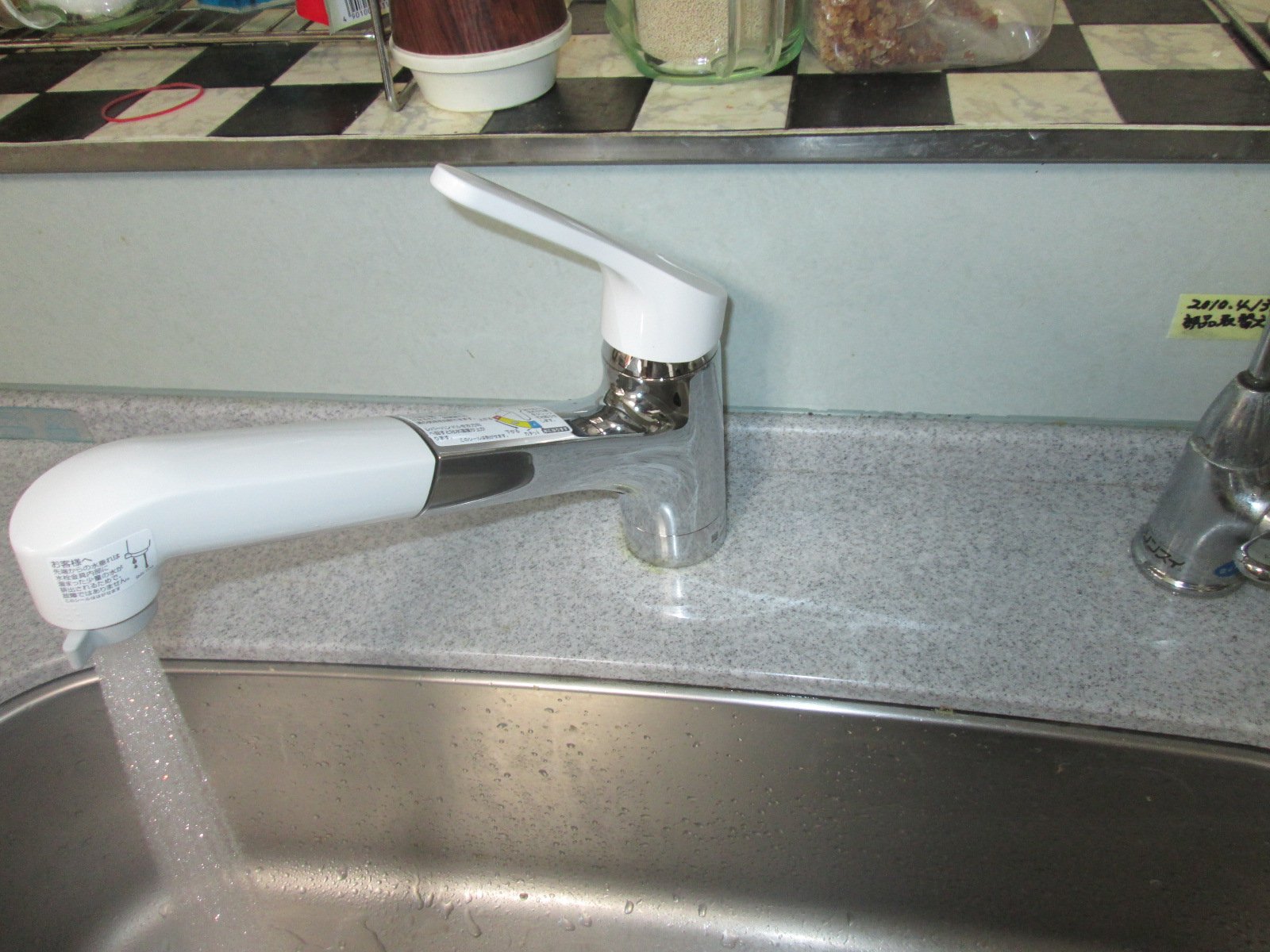 台所水栓取り替え ワンホールシャワー切り替え式 八尾市