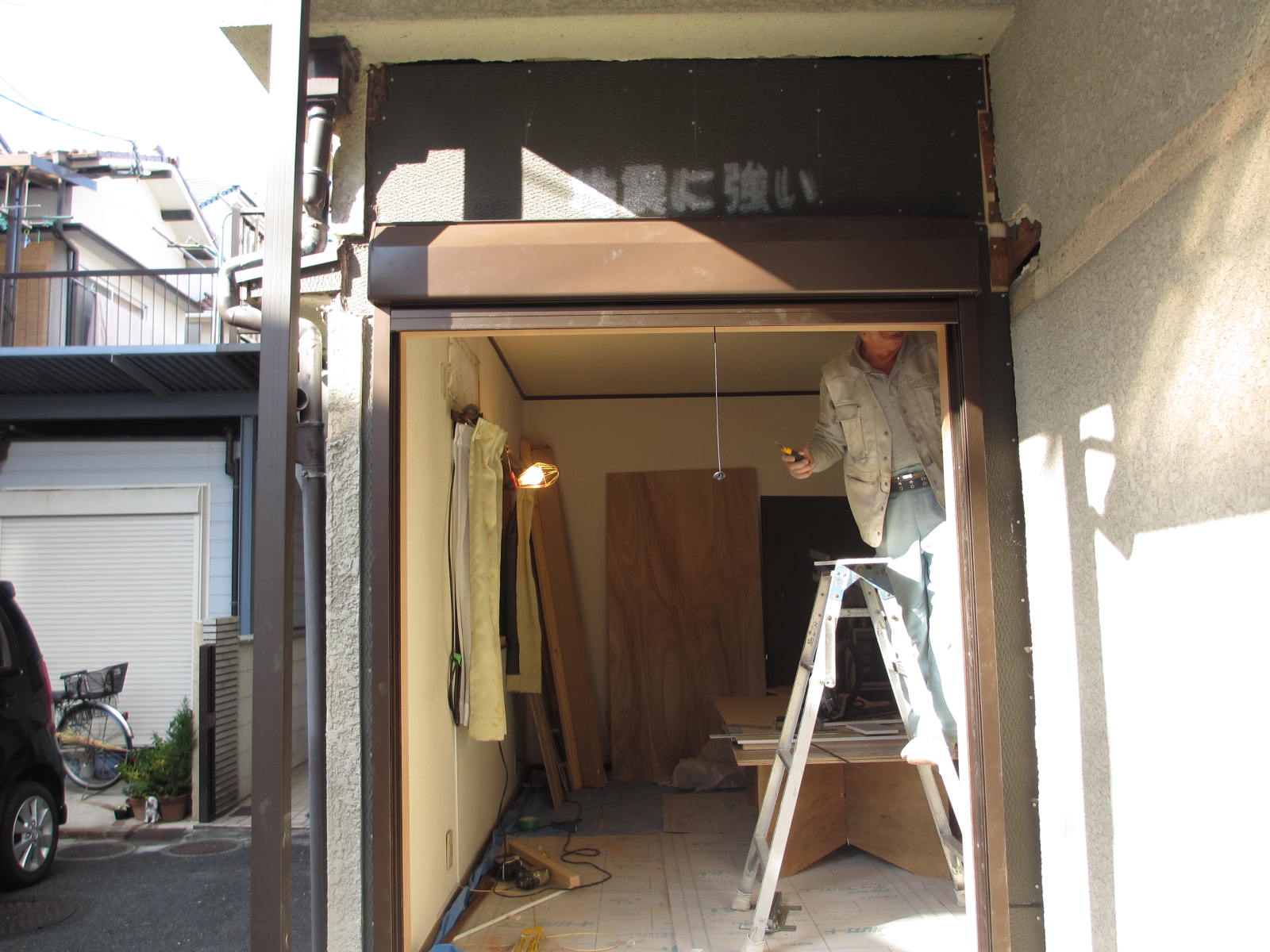 後付タイプのシャッターと取り付けるのも困難でしたので、サッシごと入れ替えることに。