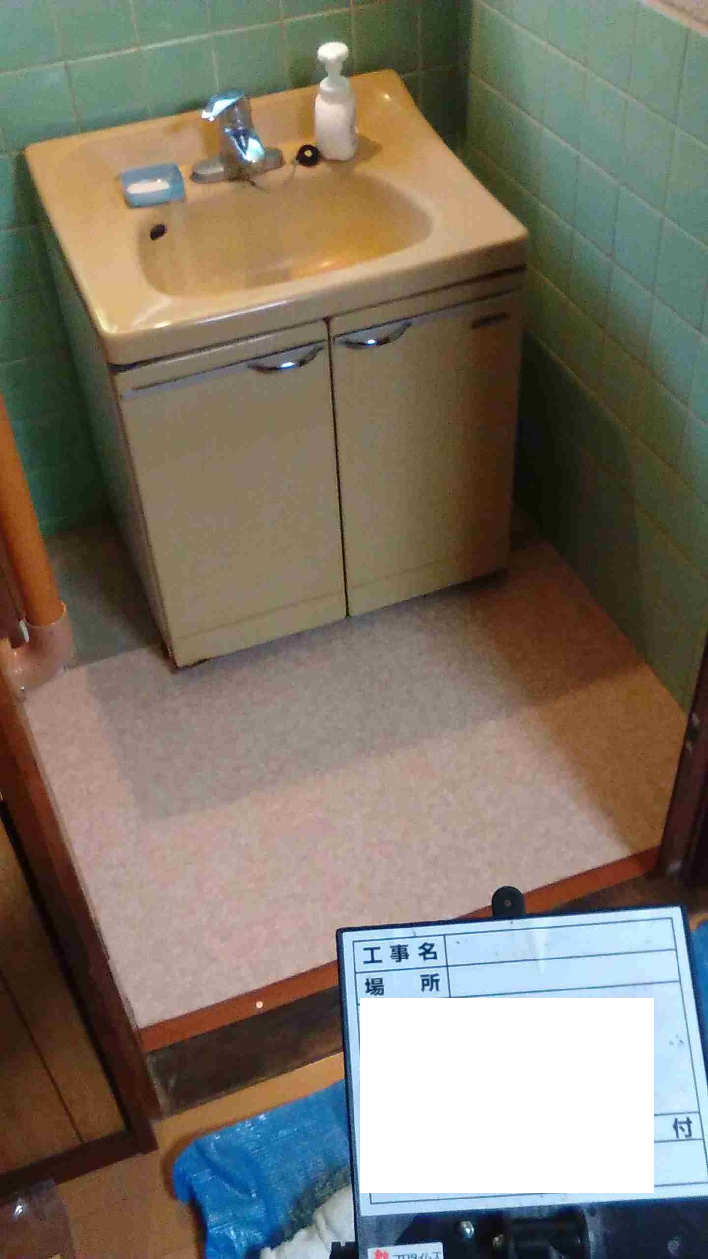 リビングから洗面室への出入口には5cm程の段差があり、転倒する恐れがあったので段差を解消させて頂きました。 左官で嵩上げの後、クッションフロアへ仕上げました。