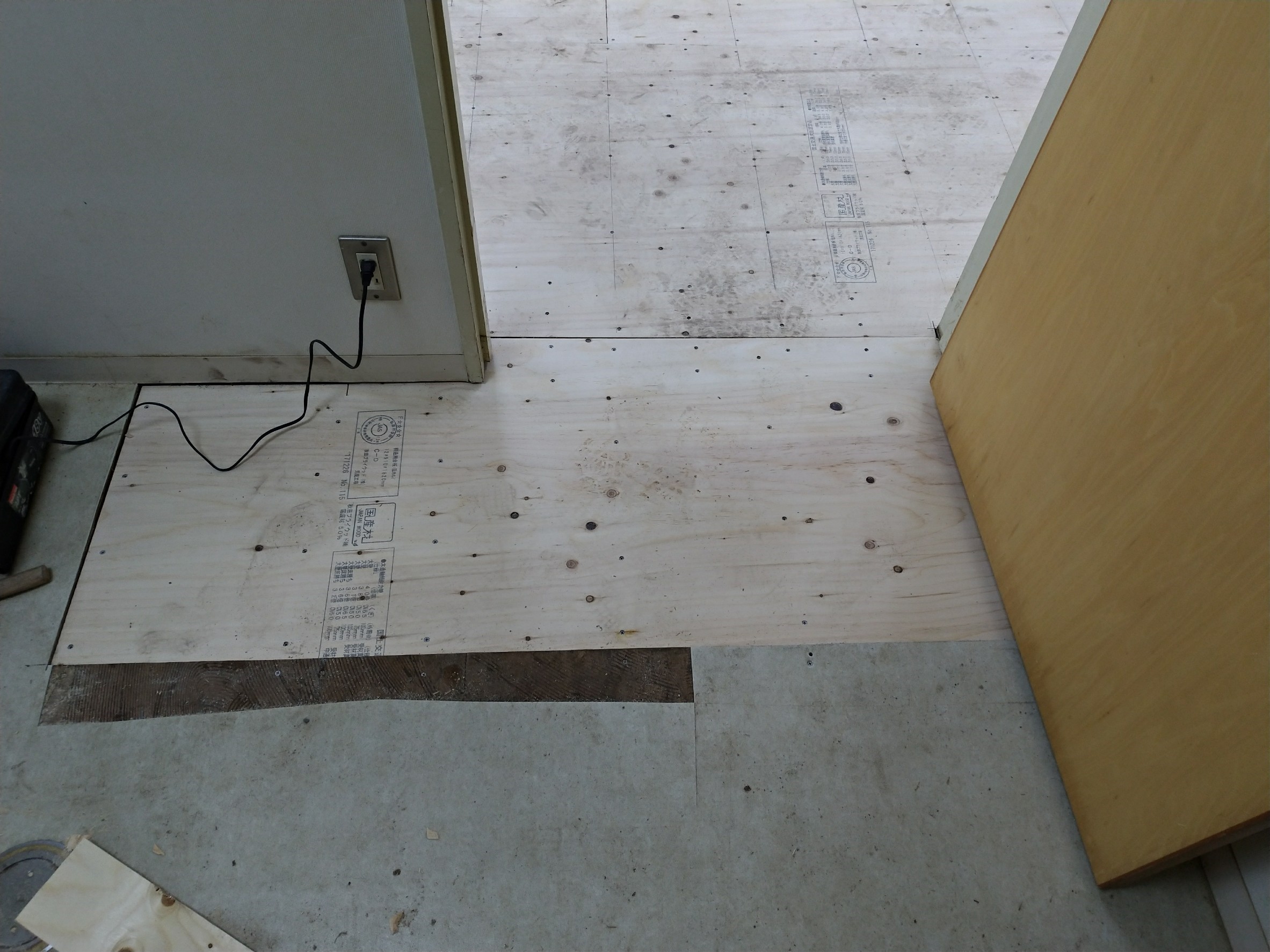 下地をしっかり治して、コンパネをはりました。