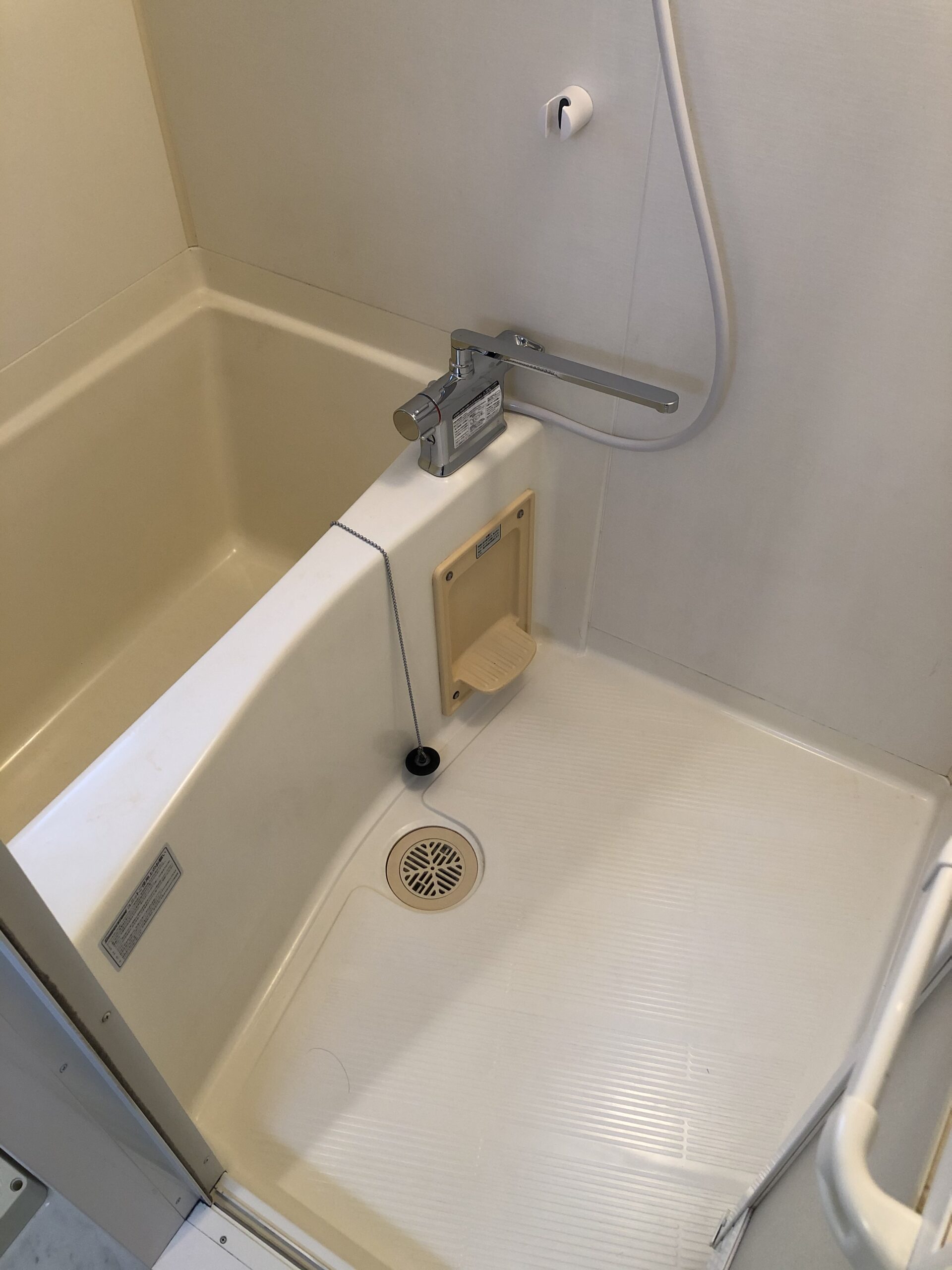 施工前 2バルブタイプの水栓が付いており、お湯の温度設定が2つバルブを回して調整するタイプでした。