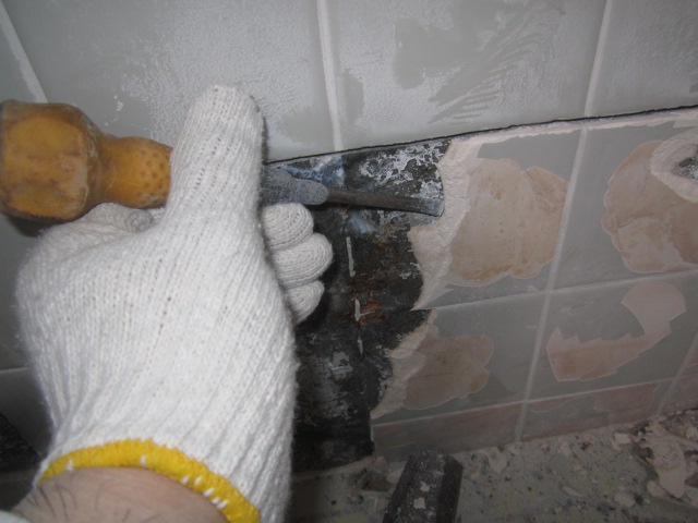 部分補修は、悪い部分のタイルを一枚づつめくっていきます。