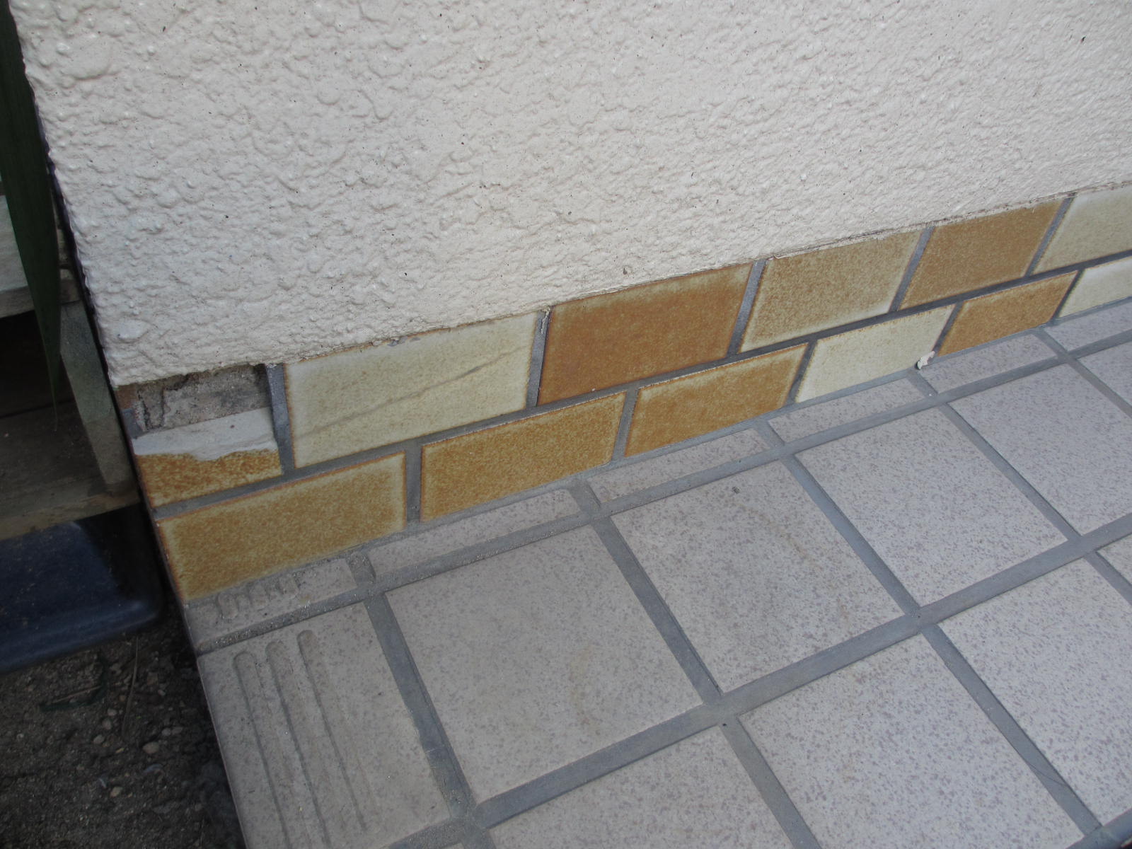 玄関ポーチの壁タイル補修 八尾市
