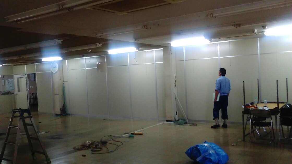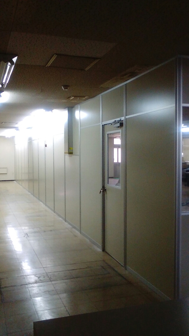 とても大きな空間なのでアルミパーティションで区画することにより空調効率向上しました。40m