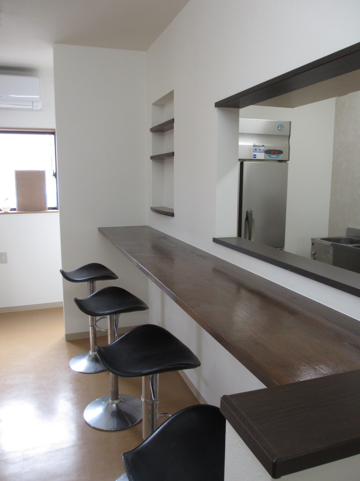 元お寿司屋さんだった店舗を気軽なcafeに! お孫さんが元cafeで使われていた椅子やテーブルを利用。ぴったりの雰囲気になりました。