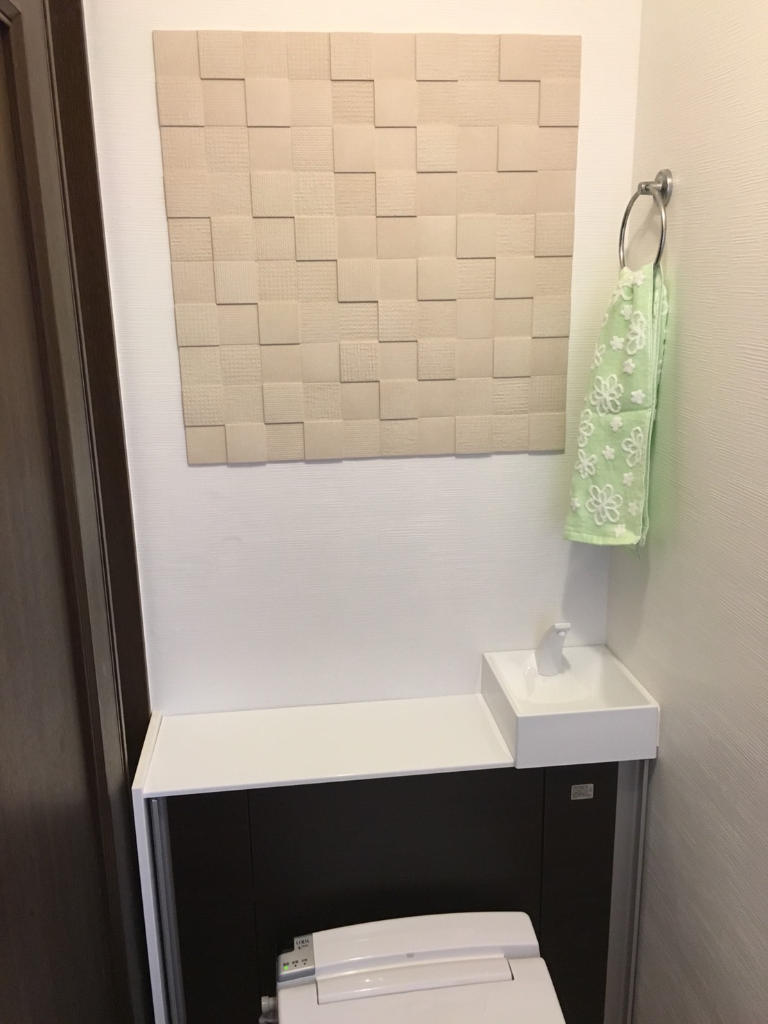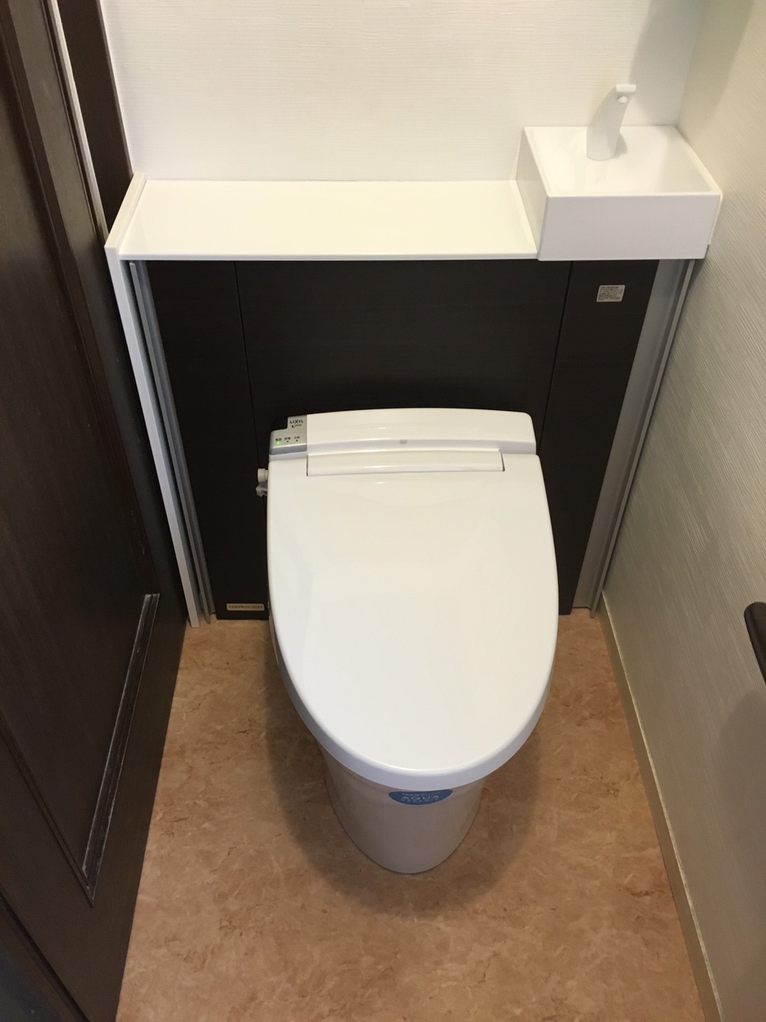 トイレの取り替え工事させていただきました。 人気のリフォレに、LIXILのタイル エコカラットを貼らせていただきました(^^)v お洒落になりました(^o^)/