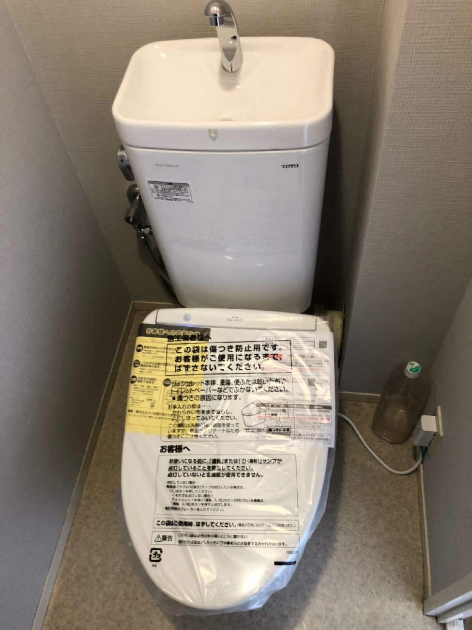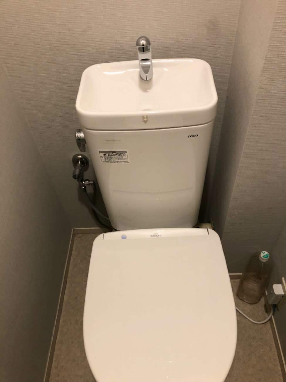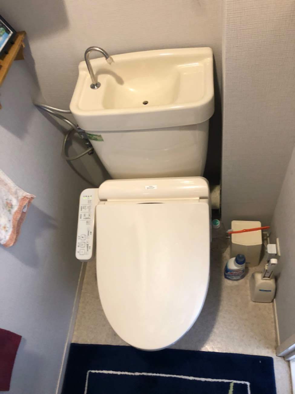 工事前は従来のタンクでした。節水型便器、タンクにすると補助金が出てお得です。袖リモコンが邪魔で掃除も面倒です。