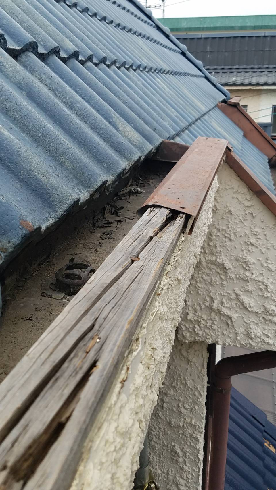 板金の笠木の下地が腐って、釘が抜けやすくなり、飛んで行ったようです。