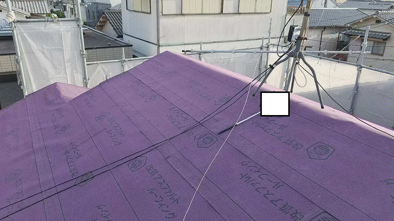 瓦を撤去し下地をさせて頂き、ルーフィングを張っています。