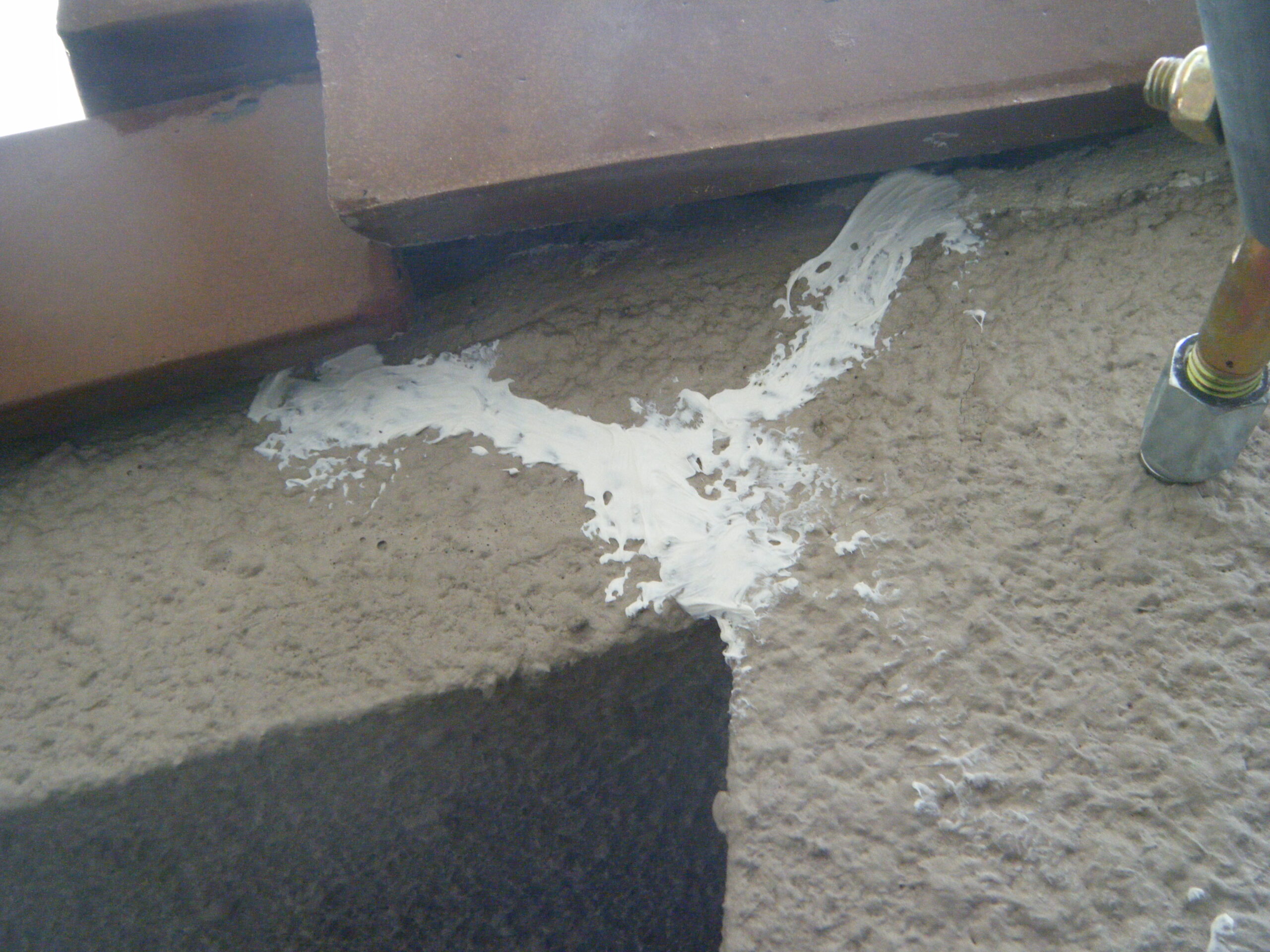 塗装前、汚れを落とすため高圧で洗浄します。洗った水はかなり汚れてます。