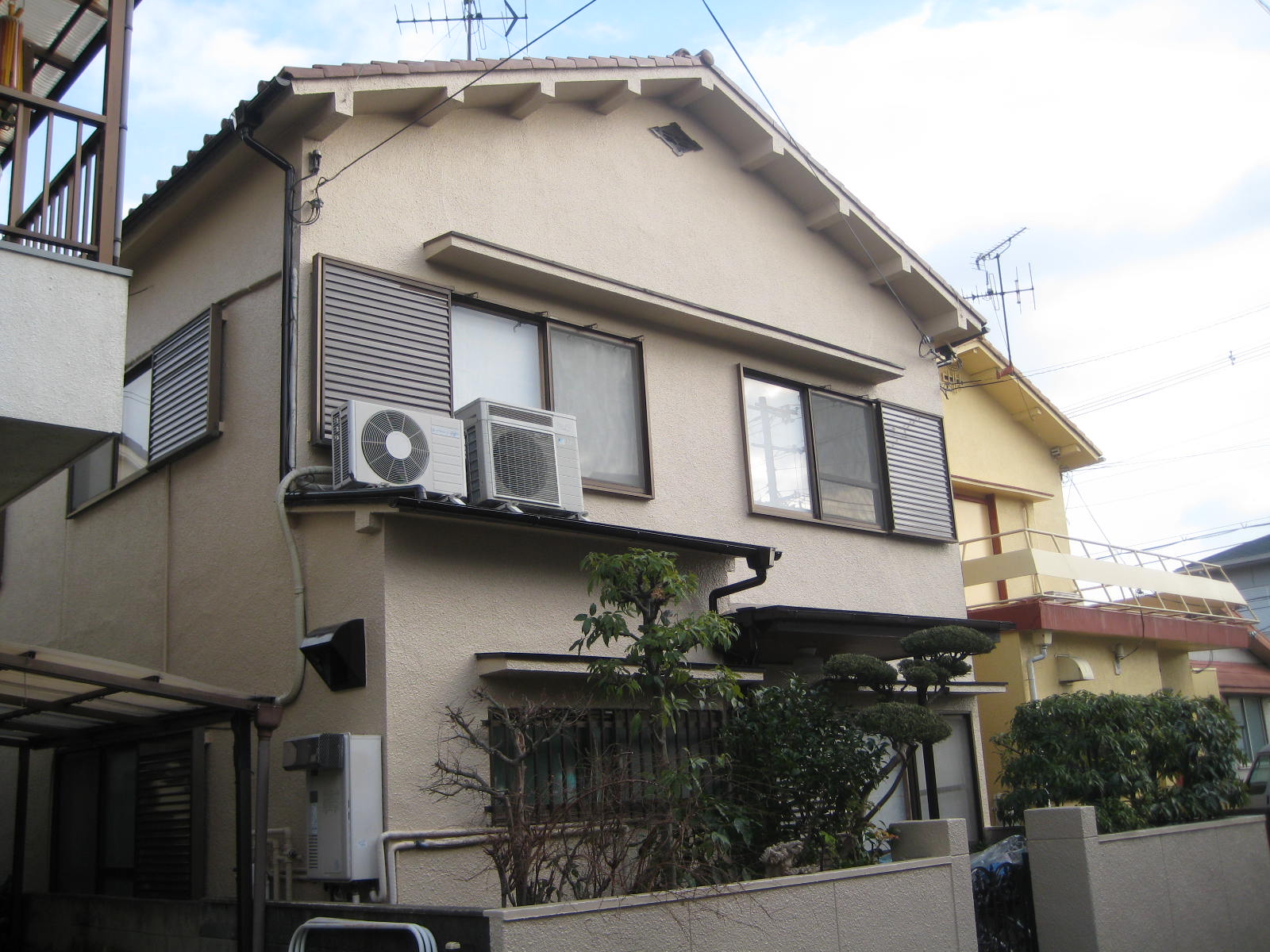 前回塗装後十数年・・・モルタルのひび割れから雨漏りの可能性があり、防水目的で塗装を検討いただいてました。