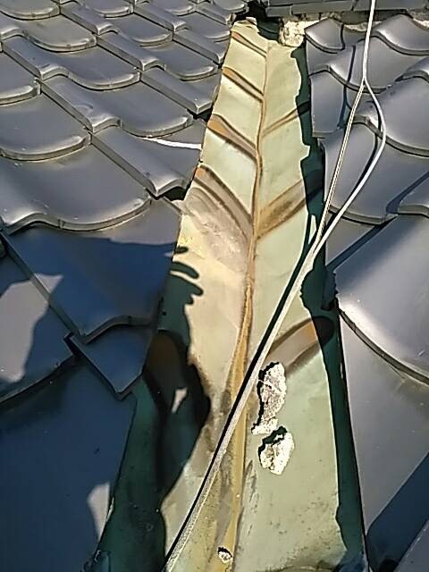 雨漏れがあるので調べてみると瓦がひび割れていたり漆喰が劣化していました。 一番の原因は経年劣化によって板金に穴が開いていたことだと思われます。 施工後は無事雨漏れは止まりました。