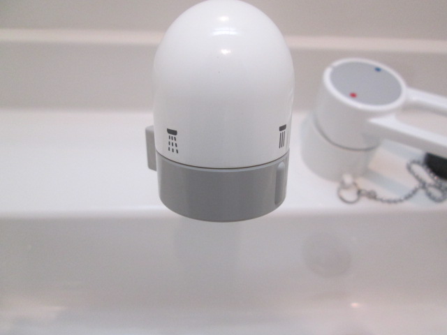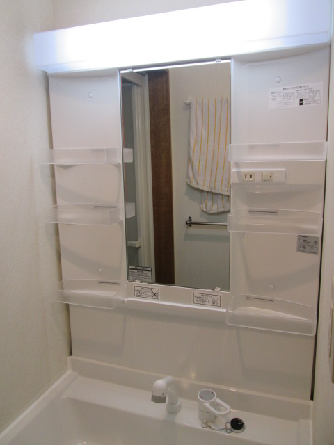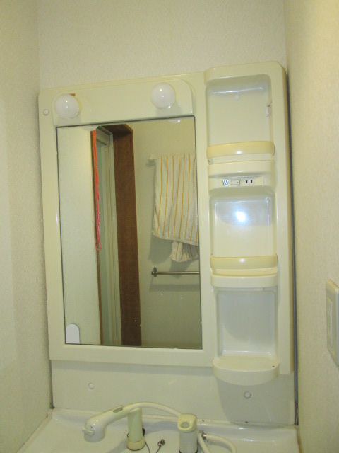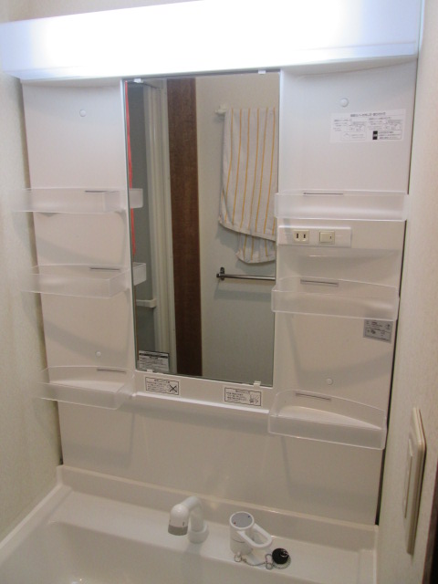 右上には、コンセントが出ておりミラーキャビネットの照明の為のものです。